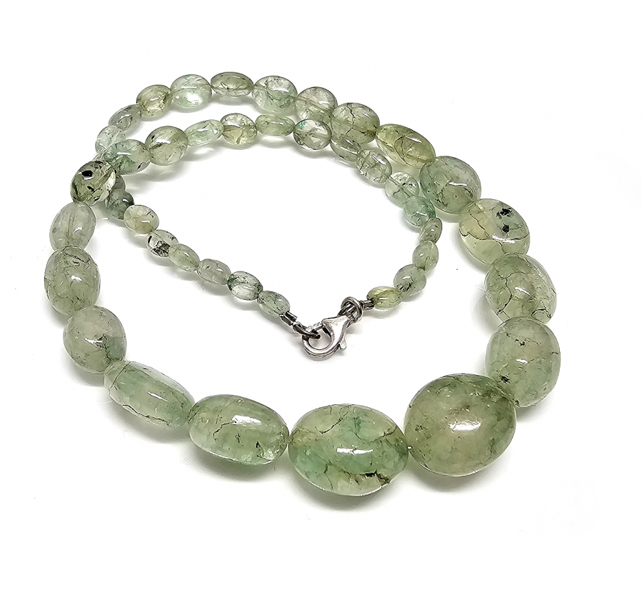Smaragd Halskette Olive (behandelt) ca. 5-15 mm verlaufend / ca. 42 cm mit Silberkarabiner