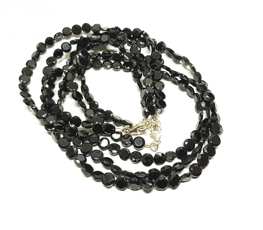 schwarzer Spinell Halskette rund facettiert ca. 6 mm / 45 cm mit Silberkarabiner