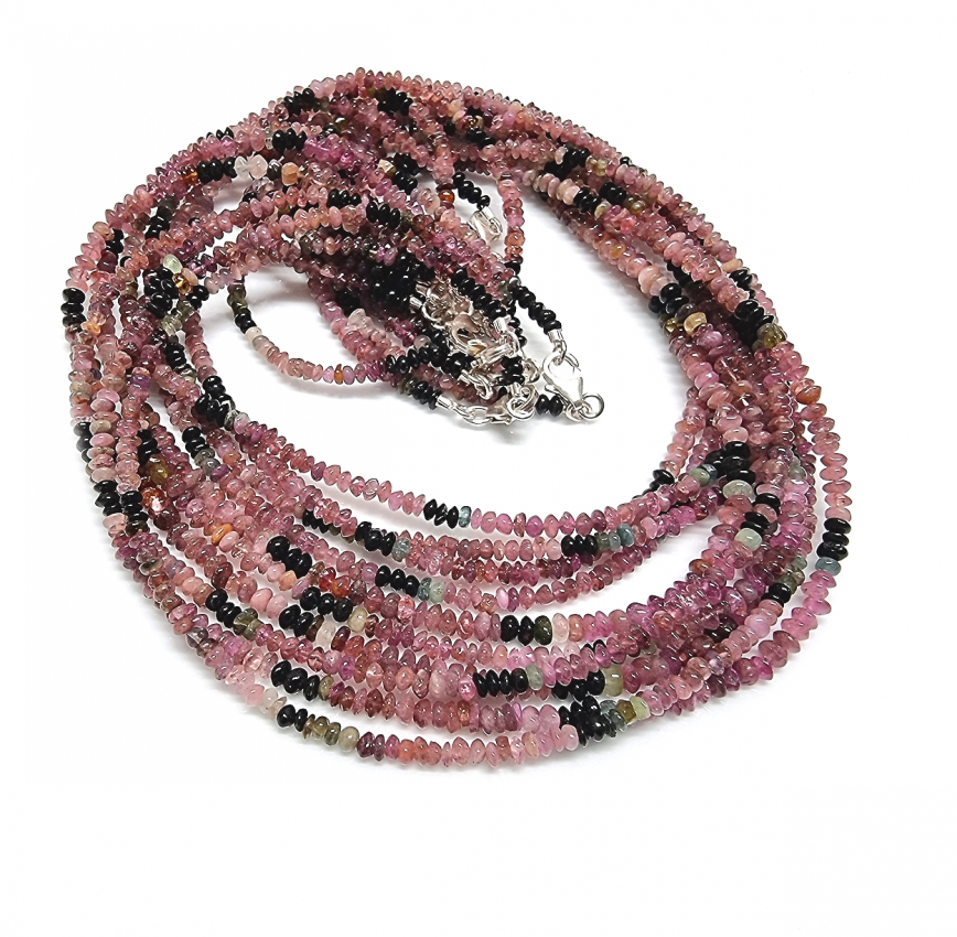 Turmalin / Rubellit multi Halskette Button ca. 3-4 mm / ca. 45 cm mit 925 Silberkarabiner