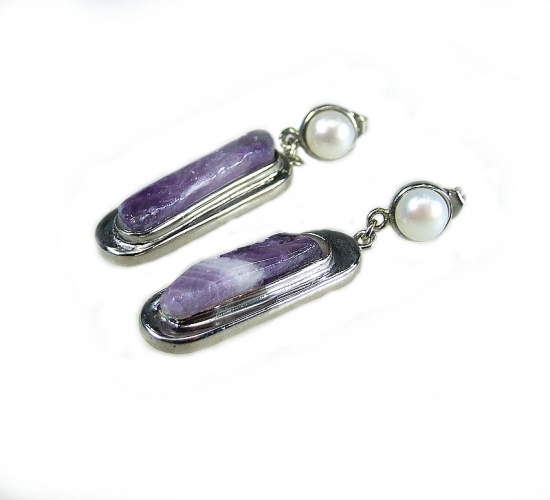 Amethyst mit Perle Ohrhstecker ca. 50 x 10 mmSie erhalten ein Paar Ohrstecker wie ab0ebildetLänge: ca. 50 mmBreite: ca. 10 mm