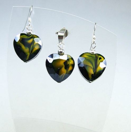 Anhänger - Ohrhängerset buntes Glas an 925 Silber