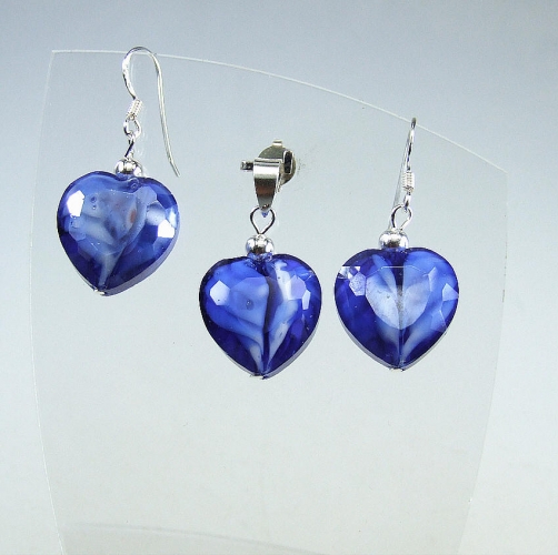 Anhänger - Ohrhängerset buntes Glas an 925 Silber