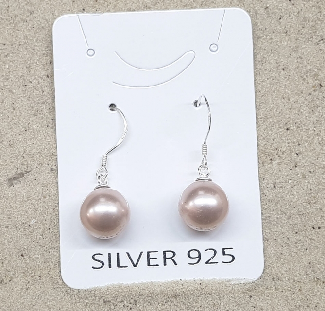 3 Paar Ohrhänger Muschekern Flieder ca. 10 mm an 925 Silber