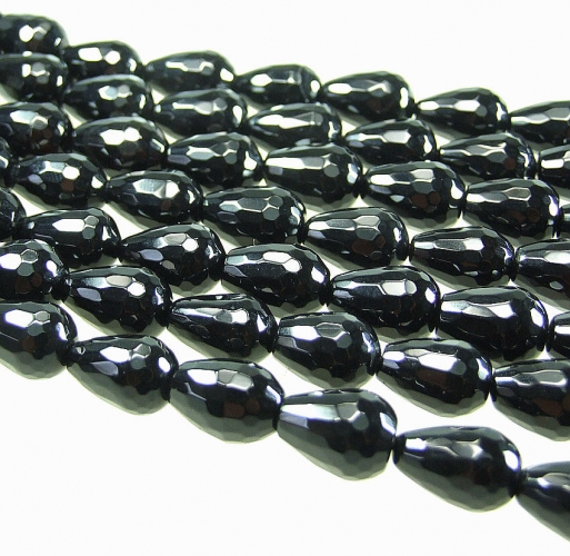 Achat schwarz Pampelstrang facettiert ca. 10 x 14 mm / ca. 40 cm