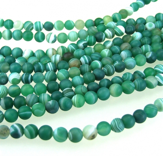 grüner Streifenachat gefrostet Kugelstrang ca. 8 mm / ca. 40 cmSteingröße: ca. 8 mmLänge: ca. 40 cm