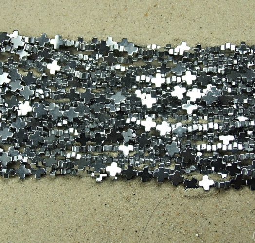 Hämatit Strang Kreuz Platinfarben ca. 6x6 mm / ca. 40 cm