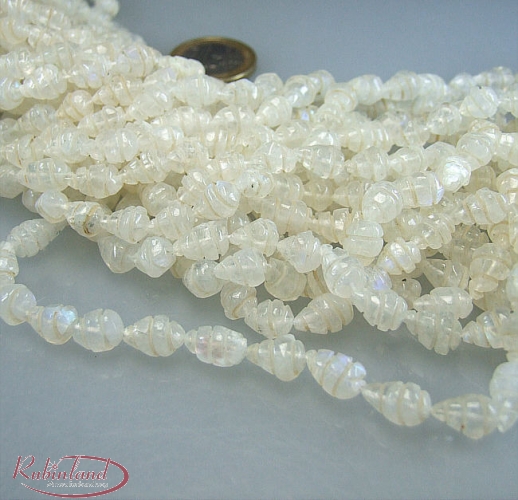 Mondstein gravierter Pampelstrang ca. 3/5 x 5/8 mm / 36-37 cm Sie erhalten einen Kettenstrang wie abgebildet Das 1.- Euro Stück ist nicht Bestandteil des Artikels Kettenstränge und Edelsteine von Rubinland - Ihr Großhandel im Internet
