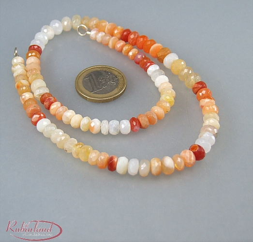 Feueropal Buttonstrang facettiert ca. 6 - 7 mm verlaufend / 40 cm Sie erhalten einen Kettenstrang wie abgebildet Das 1.- Euro Stück ist nicht Bestandteil des Artikels