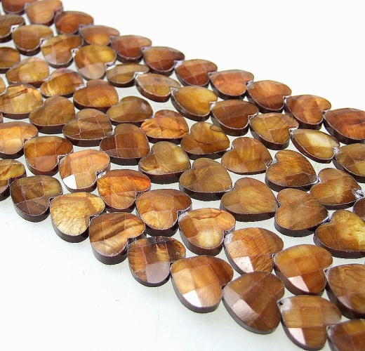 Perlmutt goldfarben Herzstrang facettiert ca. 14 mm / 40 cm