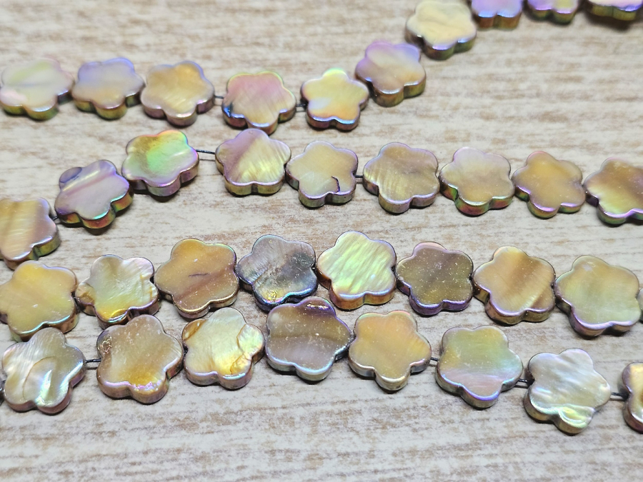 Perlmutt goldfarben Kettenstrang Blume ca. 14 mm / ca. 40 cm