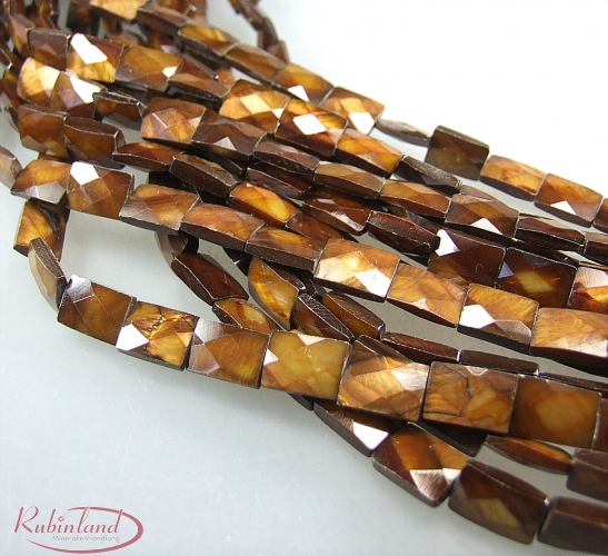 Perlmutt goldfarben Rechteckstrang facettiert ca. 10 x 14 mm / 40 cm