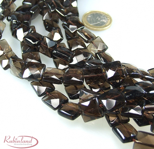 Rauchquarz Rechteckstrang facettiert ca. 12 x 12 mm / 40 cm Sie erhalten einen Kettenstrang wie abgebildet Das 1.- Euro Stück ist nicht Bestandteil des Artikels