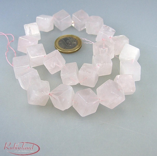 Rosenquarz Würfelstrang diagonal 12 mm / 40 cm Sie erhalten einen Kettenstrang wie abgebildet Das 1.- Euro Stück ist nicht Bestandteil des Artikels Strangware und Schmuckwaren von Rubinland - Ihr Großhandel im Internet