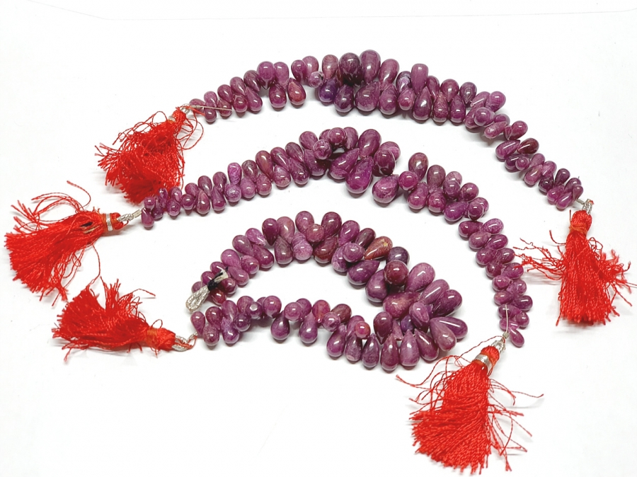 Rubin natur Pampelstrang verlaufend ca. 5x8 - 8x15 mm / ca. 15-17 cm