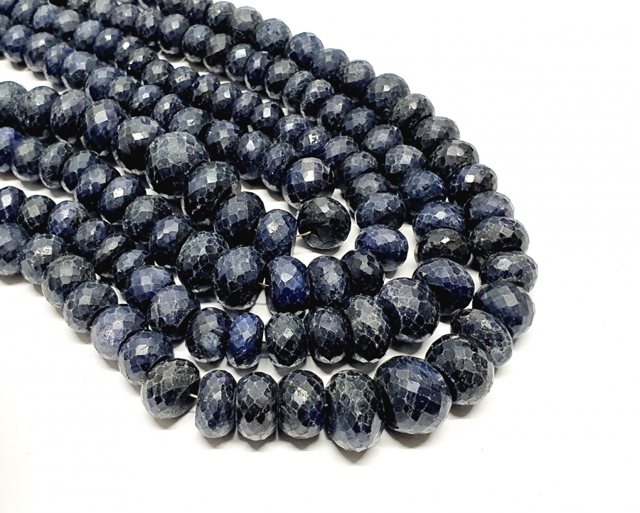 Saphir Kettenstrang Button facettiert (farblich behandelt) ca. 8 - 12 mm / ca. 40 cm