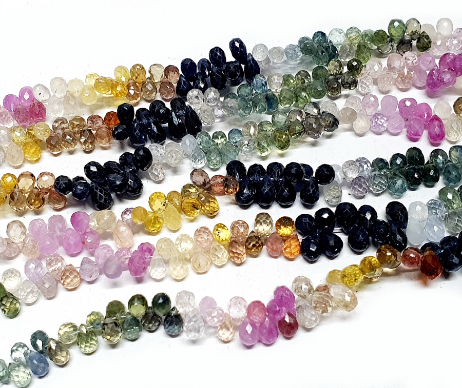 Saphir multi Kettenstrang Pampel facettiert A-Qualität ca. 3-4 x 5-6 mm / ca. 40 cm