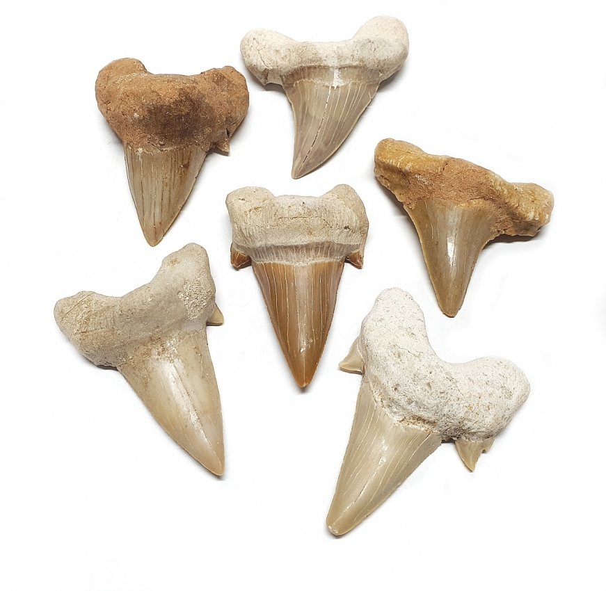 5er Set große Haifischzahn versteinert ca. 35 bis 50 mm aus Marokko